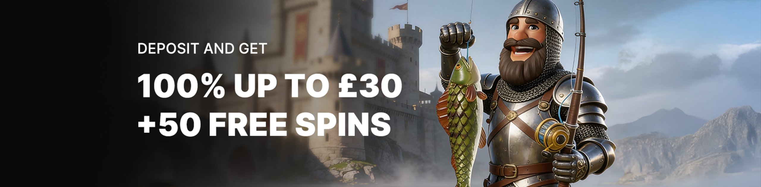Automatically credited upon deposit. Cancellation can be requested. First Deposit Only. Min. deposit: £10, max. Bonus £30. Maximum amount of Free Spins is 50. Game: Big Bass Bonanza, Spin Value: £0.1. WR of 10x Bonus amount and Free Spin winnings amount (only Slots count) within 30 days. Max bet is 10% (min £0.10) of the free spin winnings and bonus amount or £5 (lowest amount applies). Spins must be used and/or Bonus must be claimed before using deposited funds. Bonuses do not prevent withdrawing deposit balance. Bonus Policy applies .
